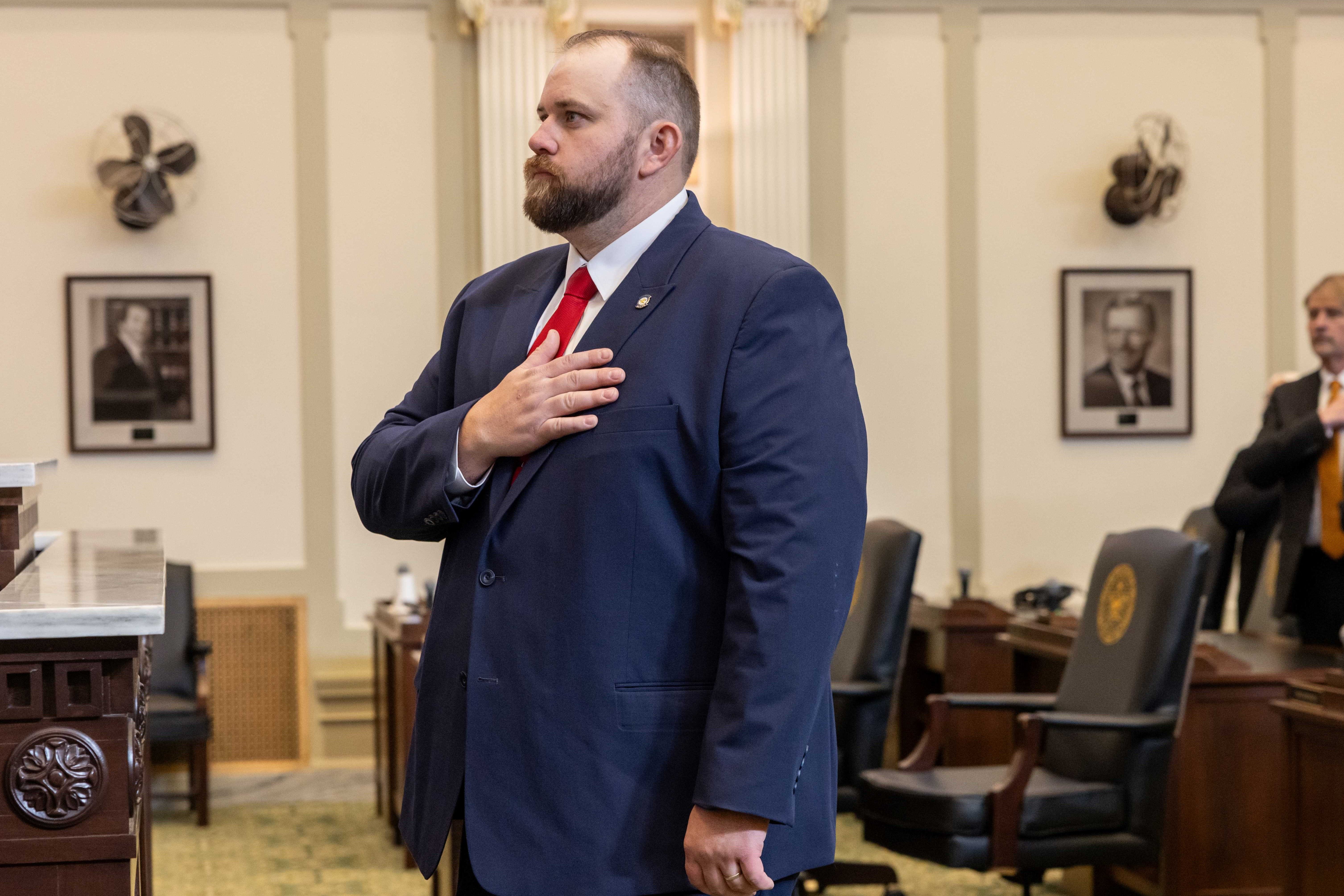 OKLAHOMA CITY – Newly elected Rep. Dillon Travis, R-Maramec, took his oath of office Wednesday in the Oklahoma House of Representatives. He was elected in a special election Feb. 10 to represent House District 35, which includes portions of Pawnee County and parts of Creek, Noble, Osage and Payne counties.